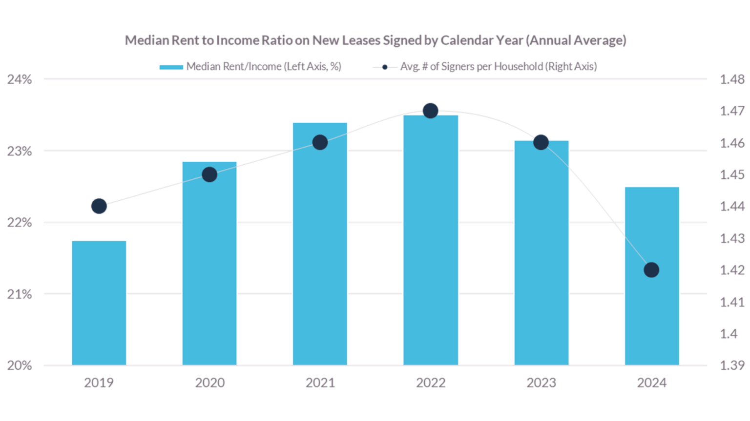 Wage growth has emerged as a more reliable indicator of demand. It has consistently outpaced historical averages and largely kept pace with rent increases. Despite significant rent hikes in 2021 and 2022, affordability has remained stable for market-rate apartment renters. Rent-to-income ratios show that renters, on the whole, have absorbed these increases without widespread financial strain.